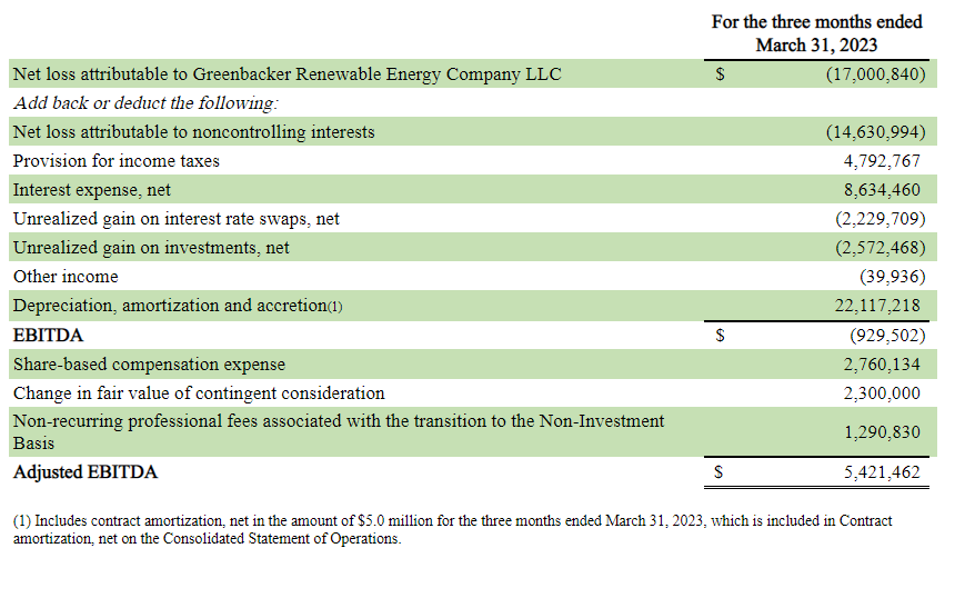 The following table reconciles Net loss attributable to Greenbacker Renewable Energy Company LLC to Adjusted EBITDA: